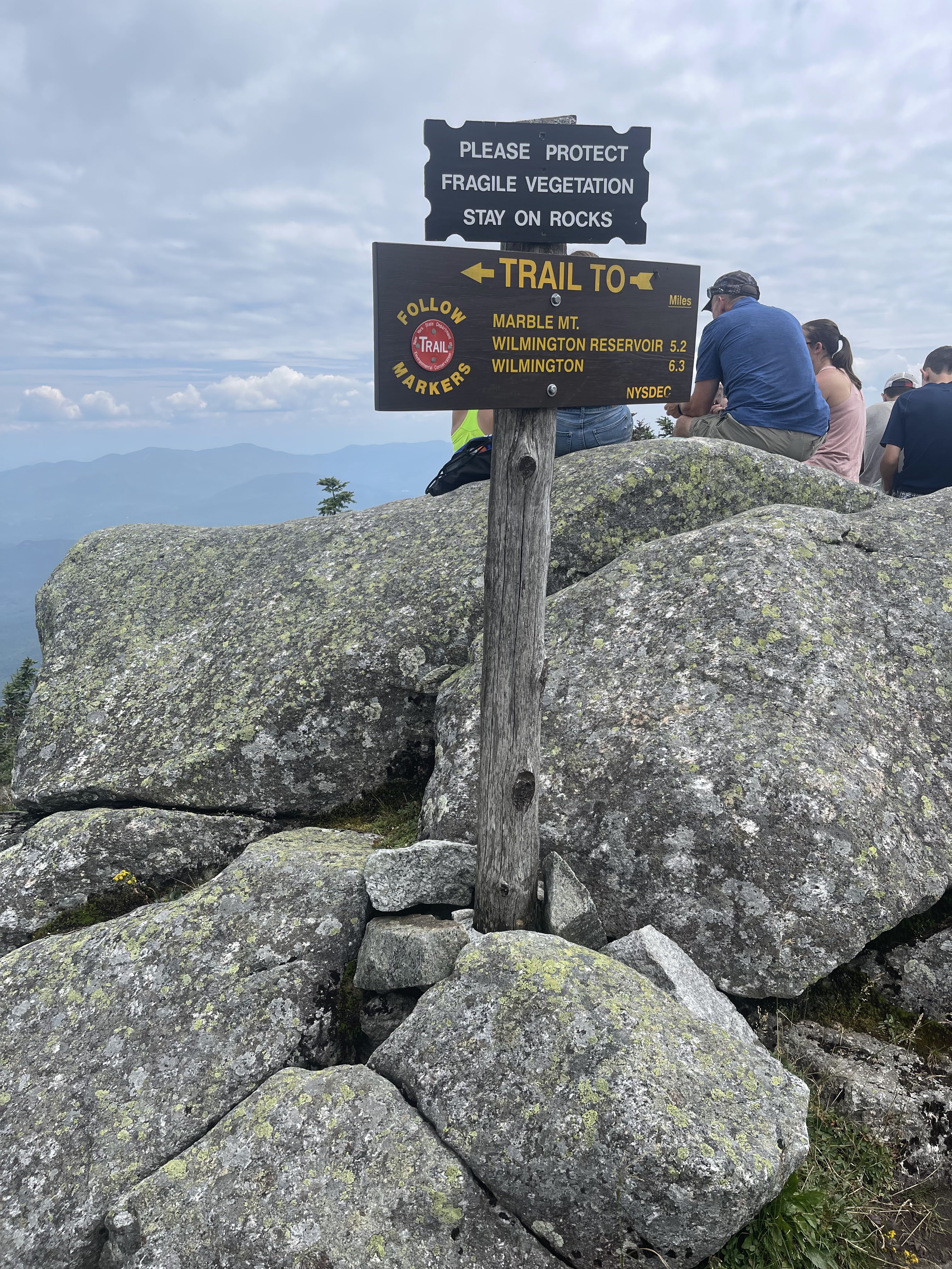i started the trail on August 5, 2021 at 10:30 a.m. i took the Marble Mountain Trail which is near Wilmington, NY. you follow this trail for about a mile and gain 2,000 feet in elevation in the process. at the mile mark you will take a trail to the left which is called the Wilmington Trail. this trail is the one that will bring you up to Esther and Whiteface. so you follow this trail for about 2.5 miles to the trail junction and gain about 1,000 feet in elevation in the process.