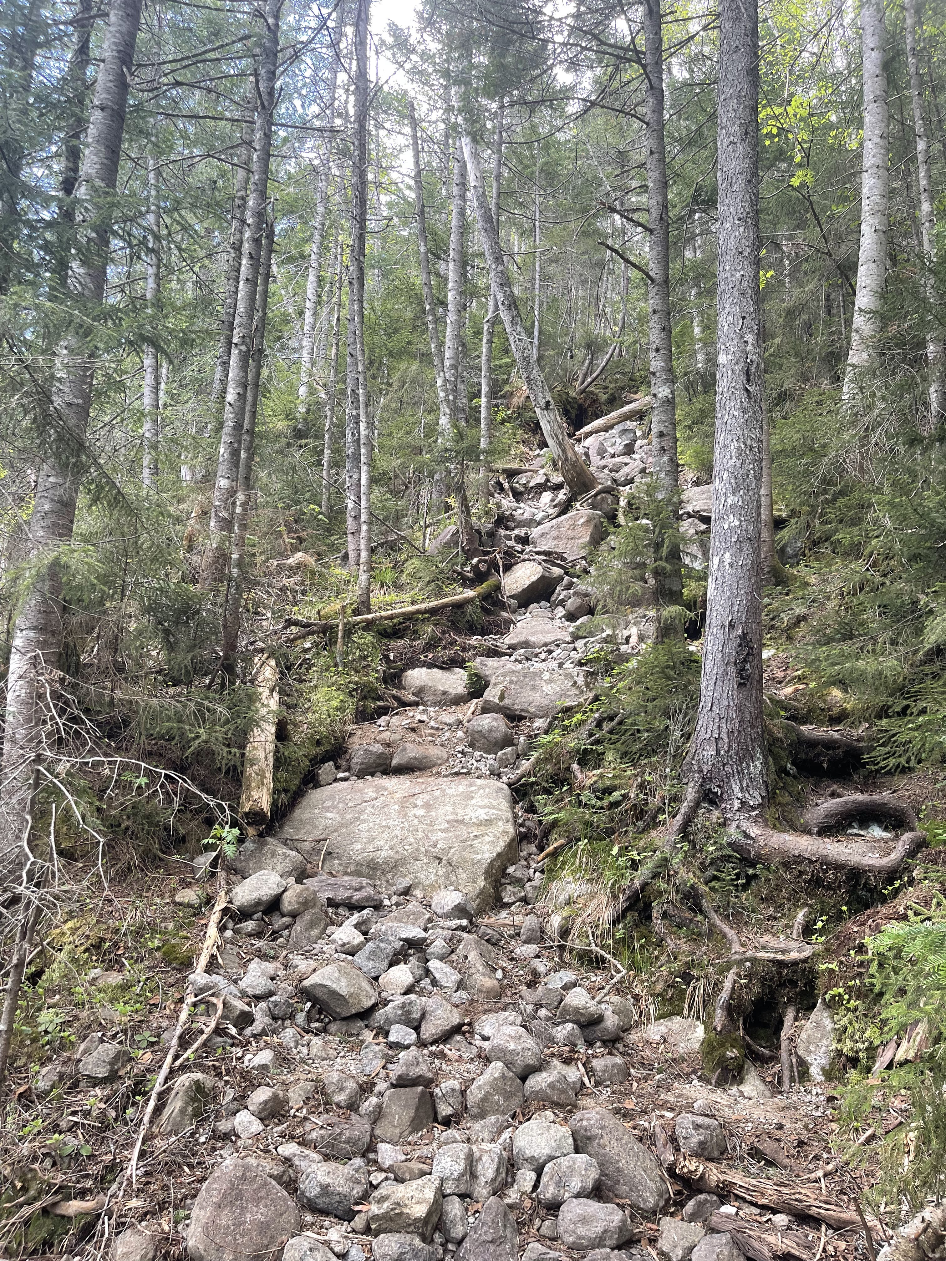 Continue along Indian Pass for another .5 miles and you will reach a trail intersection. Going straight will keep you on the trail to Indian Pass and going left will take you on the Cold Brook Trail, so stay left. At this point you have gained around 500 feet in elevation and still have around 2000 feet in elevation to gain. For 2 miles you follow the Cold Brook Trail. This trail follows a stream so there are lots of opportunities to stop and refuel or cool off in the water. I had a lot of pollen collect on my clothes and backpack so it felt nice to splash some water on myself and “clean up.”