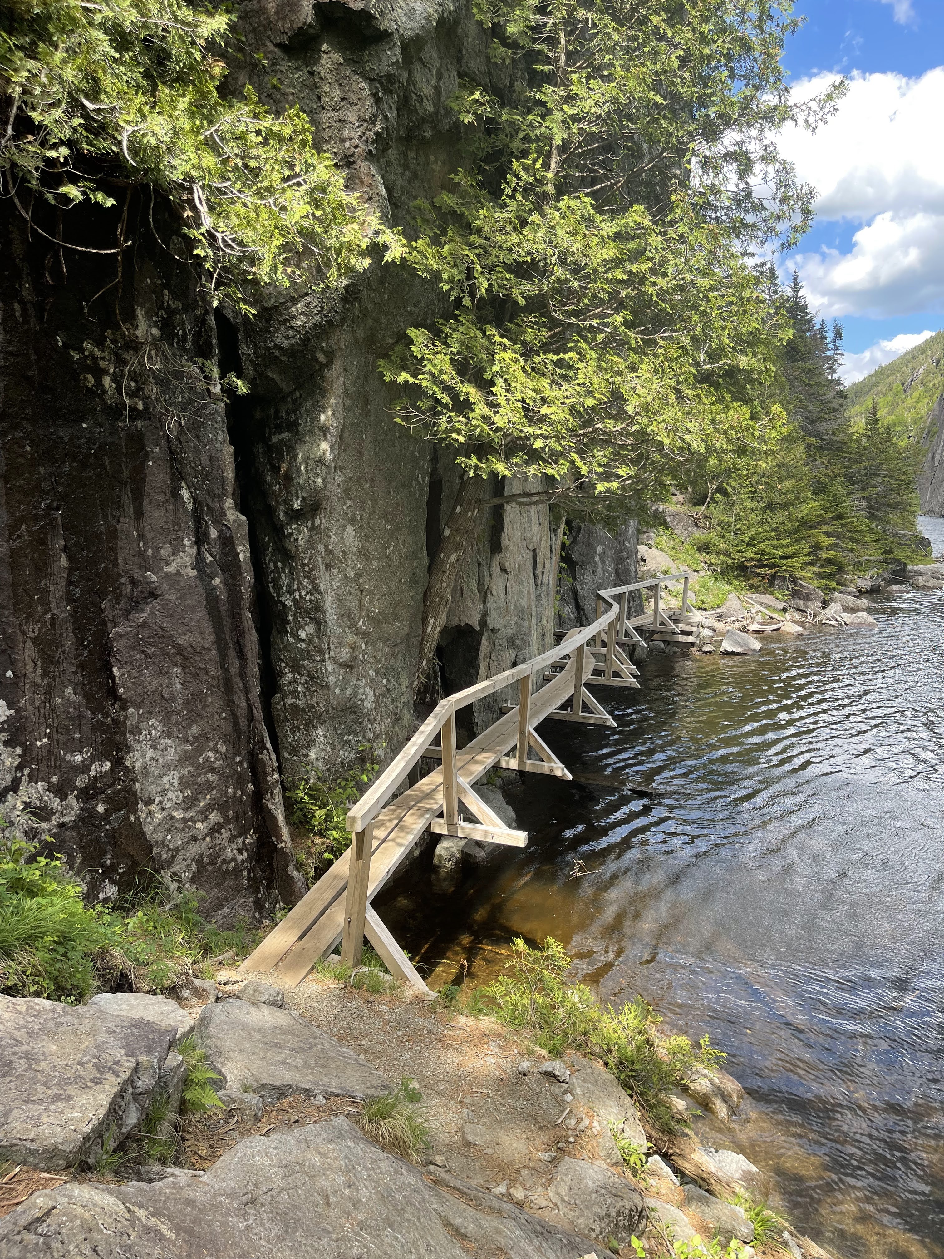 From the plane crash you will continue about 1.5 miles downhill to the NYS DEC Lake Colden Interior Outpost. There is a lot of signage in this area, follow the Lake Colden Trail which will take you to the Avalanche Pass Trail. This was a trail that I walked on in the dark when I accidentally took a 30 ish mile hike last summer. It was beautiful to see in the daylight. Avalanche pass has bridges that take you over the water and right next to the side of Avalanche Mountain. The pass goes between Avalanche Mountain and Mount Colden. There are huge boulders and ladders and is a pretty fun trail to walk on in my opinion. From Avalanche Pass you continue on to Marcy Dam and take the Van Hoevenberg Trail. This trail will eventually connect with the Old Marcy Dam Trail. If you have ever hiked from the Adirondack Loj, this trail will look familiar and will take you all the way back to the parking lot. There aren’t any technical or difficult spots on this trail, just lots of big rocks that will take a toll on your knees. I finished the trail at 4:50 p.m. I took my time on the trail because I had hiked Haystack, Basin, and Saddleback the day before and was a little tired.