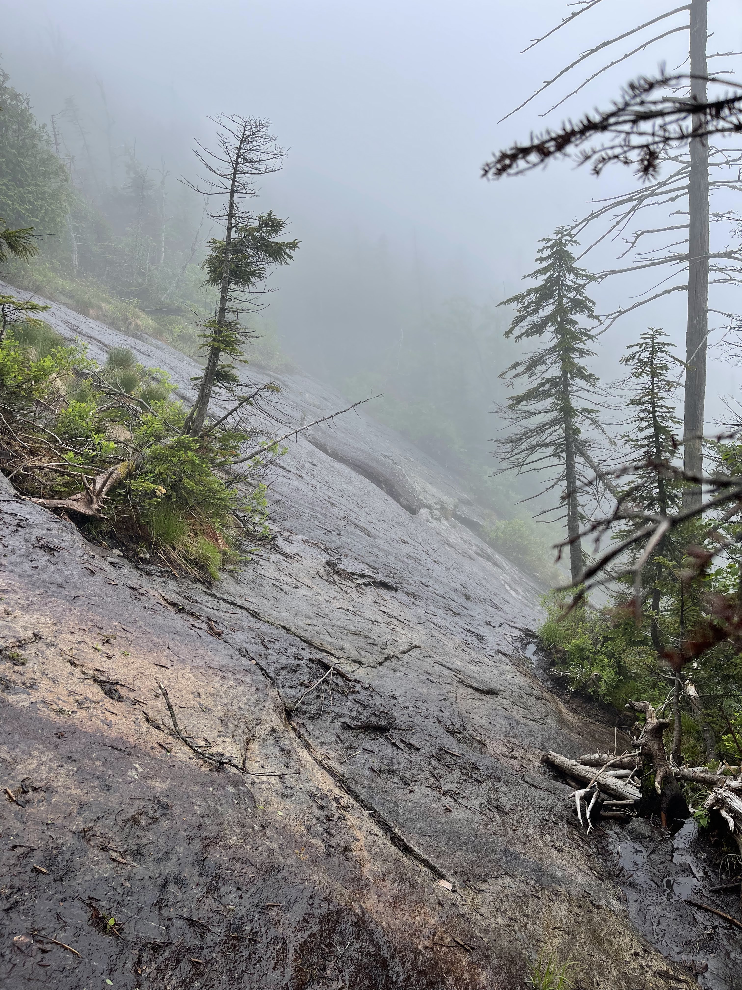 There is also a steep portion of rock where there is not much to grab onto and pull yourself up. I stuck to the left side of the rock on the way up and think that might be the best route to go. It looks intimidating when you reach the rock slide but I took my time and was able to get myself up. When I was hiking there was also a thick fog surrounding the top of the peak so this section of trail was spooky because it looked like I was just walking straight up into that fog.