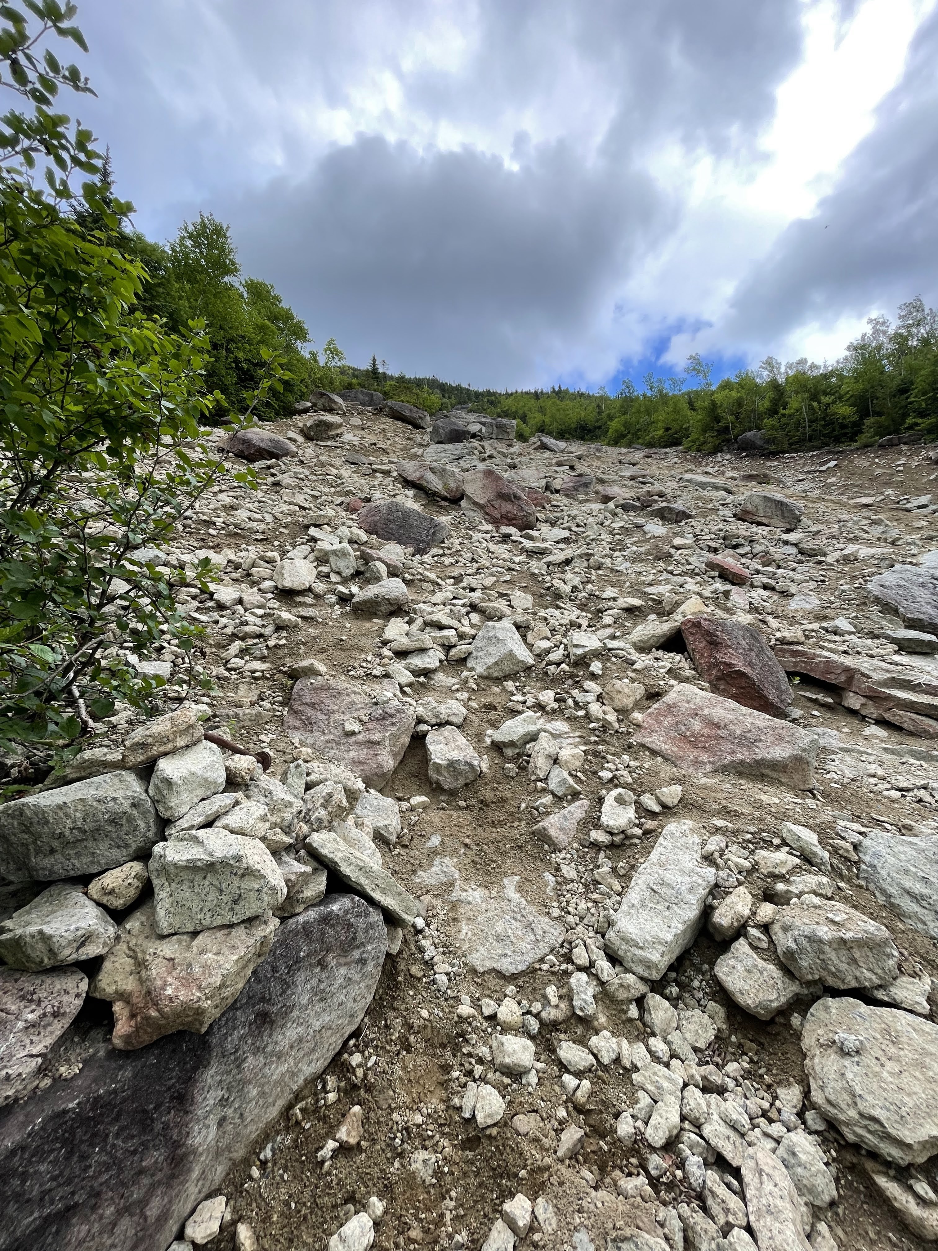 Getting down Macomb was scary. I didn’t realize how steep and dangerous the rock slide was until I got to it. At first you encounter a little “rock garden” that takes you down into the woods, keep your eyes peeled for the rock cairns that point you in the right direction. After this garden you go through the woods for a bit then come to a huge opening, this is the infamous rock slide. This slide is covered in loose sand and dirt with small pebbles and loose rock. So it is not easy to keep your footing secured making your way down this. There also doesn’t seem to be any rock cairns or trail markers telling you where to go until the end of this section of trail. I was terrified to go down this at first, but just came up with a game plan and went slow. I slipped a couple of times but eventually came to the rock cairn that points you to go back into the woods. You do not want to miss this cairn because the trail becomes even more dangerous after this point. There is a large rusty nail sticking out of this rock cairn. From this point of the trail to the end it is pretty easy with lots of trail markers and large losses in elevation. Eventually you will reach a rock cairn that sits between three trails. Going to the right will take you back up to Dix and going a bit to the left will take you to the parking lot (which is the same way you took on the way in). I got to my car at 6:30 pm with sore legs but a feeling of accomplishment.