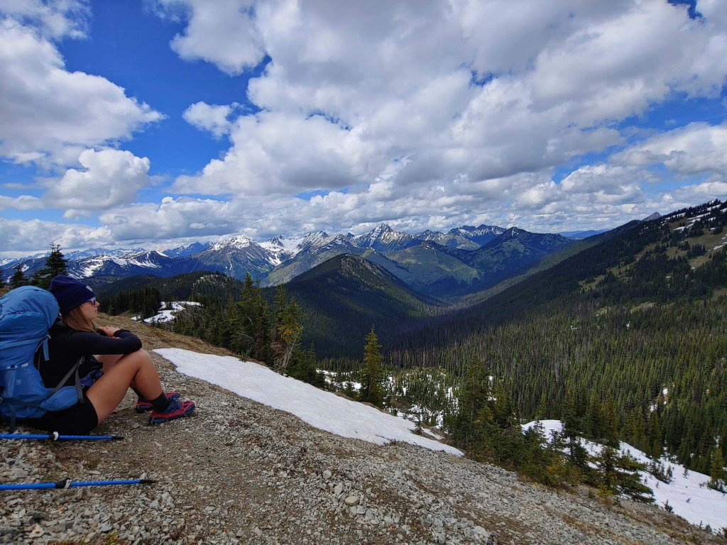 On day 6 we hiked up to Granite Pass and had to go up about 3,000 feet in elevation in about 5 miles. It was a little tough because of how much snow there was and the heavy backpacks but we made it up there. The trail was beautiful in this section with amazing switchbacks along the side of a cliff. We hiked a little over 10 miles on this day and found a campsite on the pass. It was a pretty open and sunny area that gave us a great look at the surrounding mountains. I am trying to keep a slow and steady pace for these first couple weeks of the hike so I don’t injure myself. It was a short day and I had to keep reminding myself that it’s okay to have short days and set up camp early. Sometimes I feel like I need to exhaust myself everyday but, again, I remind myself that this is a thru hike not a sprint.