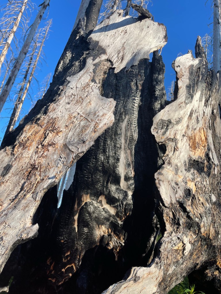 On day 22 we got up and left camp by 5:30. There was a 15 mile burn section ahead of us so we wanted to get through it before it got too hot out. The burn was from 2017, and while things are beginning to grow through there, there is absolutely no shade. We had a somewhat long water carry, about 8 miles. I had 3 liters of water this time and was glad to have extra. We got to this piped stream 13 miles in and it had the coldest water I’ve had on this trip. It was around 10:30 and there was a small tent side with trees so we set up for an early break. I pitched my tent to get a break from the bugs and took a nap. I washed up in the stream too which was relieving.