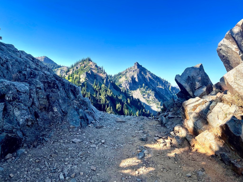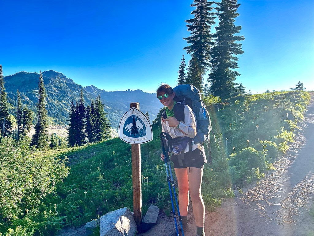 On day 20 we left Snoqualmie Pass. I tried to sleep in since I was sleeping in a bed for once but just couldn’t. The whole night I tossed and turned thinking about sending my snow gear home and whether or not it was the right decision. I must have fallen asleep at some point though, I woke up at 6. I had lots of coffee and read some more of Catcher in the Rye. There were lots of hikers getting their packs and food ready so I just hung around, trying to keep out of the way at the cabin. Autopilot and I decided to stay til 3 so we didn’t have to hike while it was super hot out. The high for the day was 97 degrees Fahrenheit and we didn’t want to torture ourselves. We got some news that there is a big SOBO hiker bubble behind us which I have mixed feelings about. I like meeting new hikers but I’m not a fan of being in a big group. I guess we will see how it pans out in the coming weeks. I’ve just gotta remember that this is my journey, it doesn’t much matter what everyone else is doing.