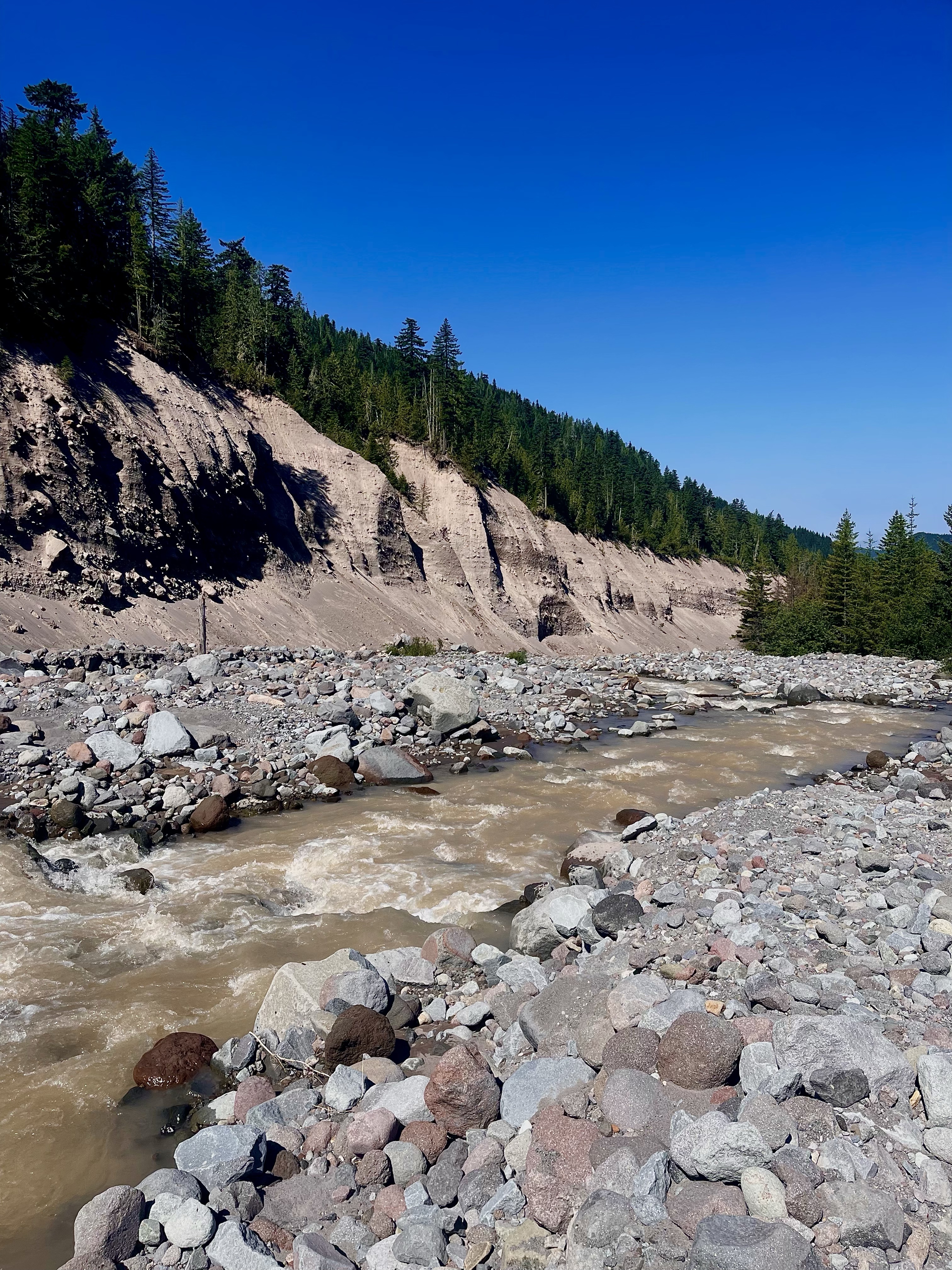 Now the trail dipped down to Zig zag river at 4,770 feet. The water crossing wasn’t too difficult since it was just a bit of rock hopping. Then I had to start climbing back up again! I went up about 1,300 feet in 3 ish miles. This section of trail had amazing views of Mount Hood and I took several breaks soaking in the sight.
