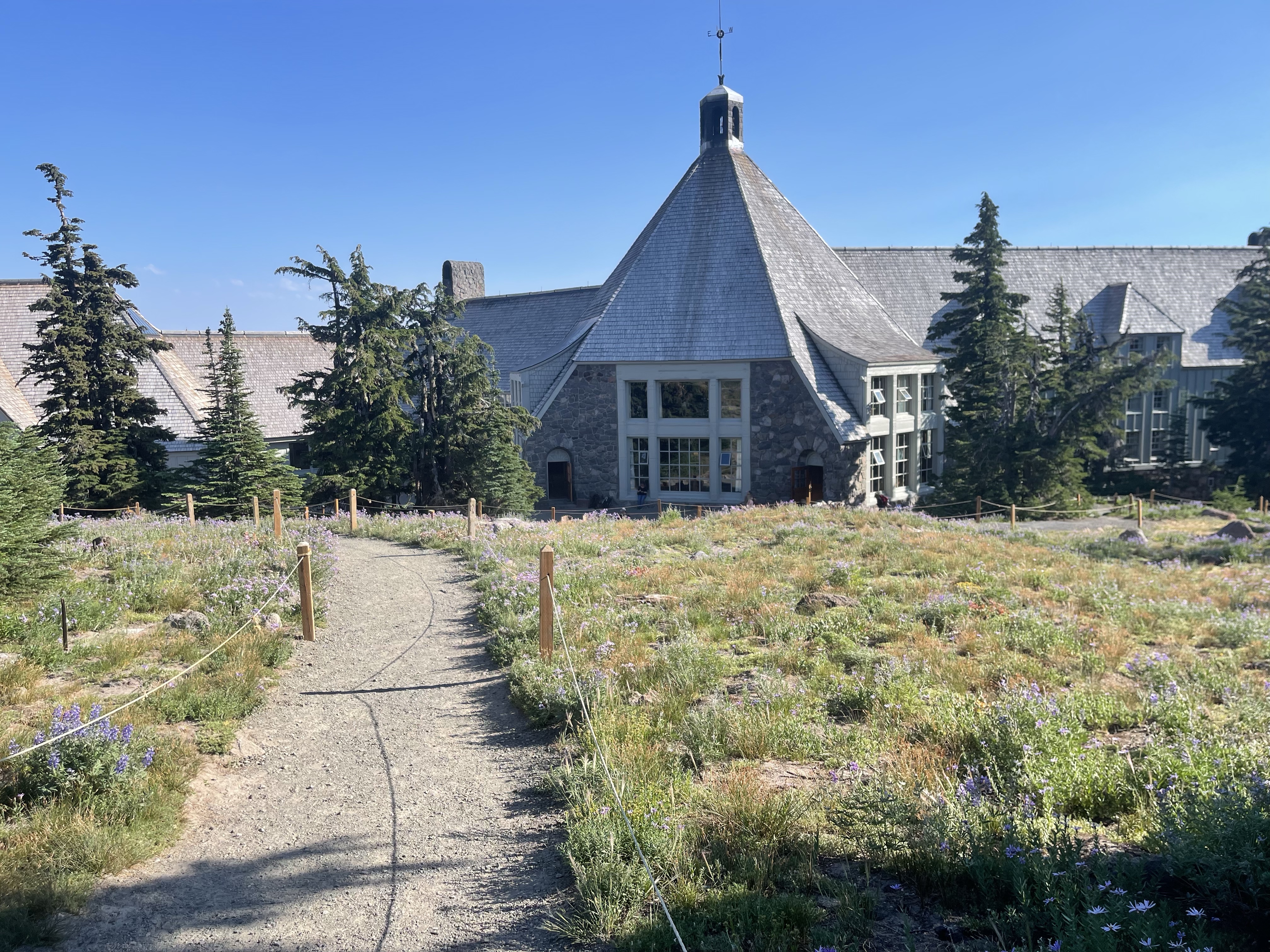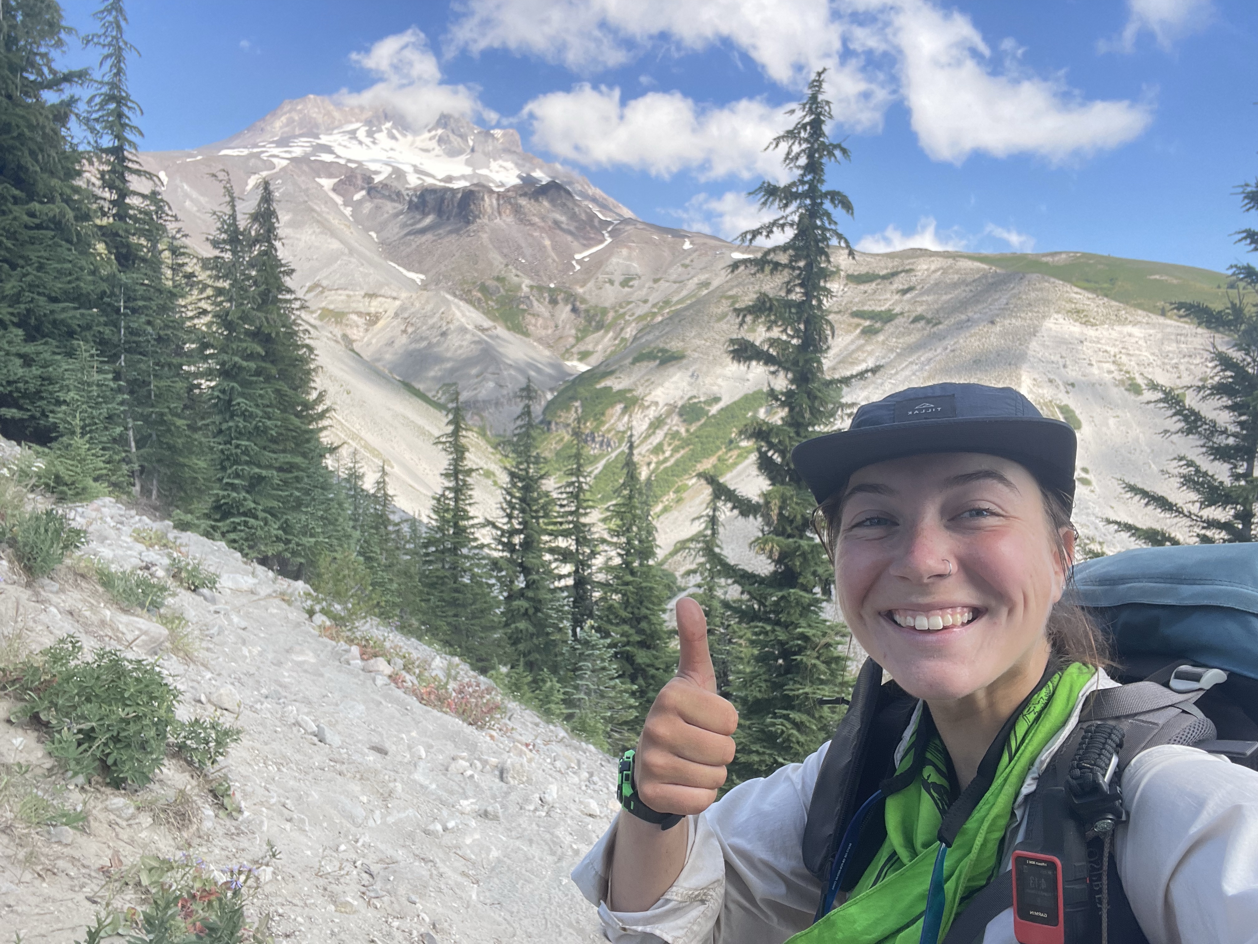 There was also a tiny little waterfall on the trail that was perfect for dipping my head under which felt refreshing. Near the top of this climb I ran into several day hikers which meant I was close to Timberline Lodge! I got to the lodge at 5:30 and went to pick up my resupply box. Someone asked if we just got back from the summit of Mount Hood, I wish I could say I did!