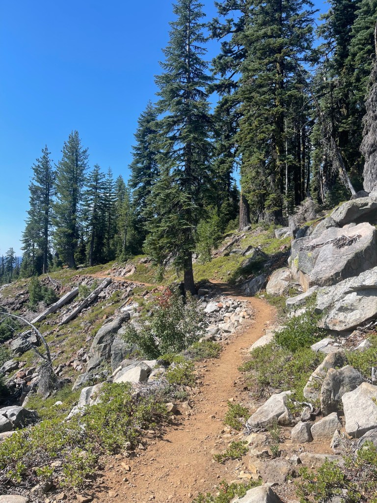 On day 51 I hiked 27 miles! I left Freye Lake by 7 and had nice views of Mount McCloughlin on the way out. The trail to the summit was 3 miles up and about 3,000 feet in elevation gain. I wish I had planned a bit better because it would have been fun to go up and summit that mountain.