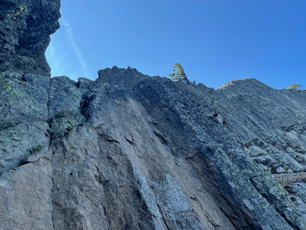 Day 50! Crazy to think I’ve been at this for 50 days already! It was a good day. I left camp by 6:30 and started the climb for the day. It was about 3 miles up to 7,300 feet. It went by quicker than I thought! The day hadn’t warmed up yet so it was the perfect cool weather for going uphill. I had amazing views of the surrounding mountains including Devils Peak. I saw that there was a side trail that led to the summit and I seriously considered going up. I decided not to though because I couldn’t see the last bit of trail and it looked a bit more like climbing than hiking. I wish I had at least gone up to take a look though, I regretted not going up within minutes of passing the trail. So, I decided to hike up “Shale Butte” when the trail got to it. It was a fun little side climb to do without my pack on.