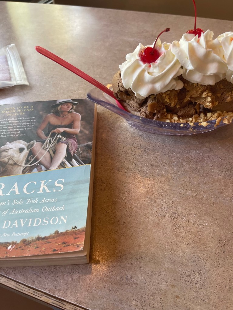 I got the the trail angels house I arranged to stay with around 12:30. I showered, washed my clothes, and figured out my plan for the day. I headed downtown to get a sandwich with a lot of veggies in it, then went to some bookstores, a thrift store, finally got a banana split, and then bought a salad and fruit from the grocery store. It was a fun day. At the bookstore I was able to trade “Crooked House” in and get a $3 store credit. I asked the cashier if they happened to have “Tracks” by Robyn Davidson, and they did! I’ve been wanting to read this book for so long and I was able to buy it used for just $5. I was over the moon. The movie that’s based on the book is in my top 5 favorite movies. They had a bunch of Mary Oliver poem collections too which I was close to buying but decided one book is heavy enough for my backpack.