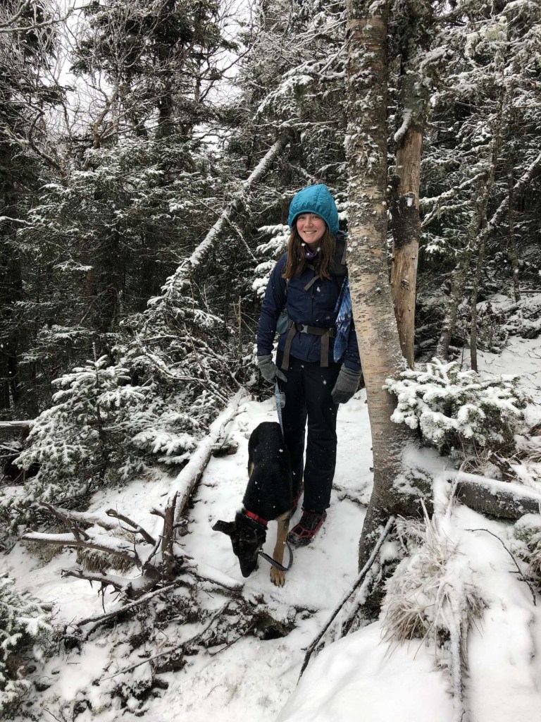 On the summit you stand at about 4,058 feet. You also have a great view of Cascade Mountain. It took about 1.5 hours to reach the summit. We took a couple of breaks along the way. Also, hiking with Cash was not the quickest since it took him a little while to begin navigating the trail on his own instead of following behind me. I had a snack at the top, drank some water, took some pictures and then we headed back to the junction. The way back was quicker than on the way in. I think because we knew how best to navigate some icy sections after already passing through. At the junction we continued on to Cascade which was a breeze. I thought that since the summit is so exposed there would be big slabs of ice. I was wrong, there was really only some snow and minimal ice. It sure was cold and windy up there though. Cash seemed to really like this part of the trail because the rock was so open he didn’t have to think much about where he was moving. The only tough spot for him was the ladder bringing you up part of the rock. He was apprehensive to go up but as soon as I went up he followed. It was snowing when we were at the top so we didn’t stay long. I wanted to take some nice pictures but my hands got cold quickly up there. It took us 28 minutes to reach the summit of Cascade from Porter. The summit of Cascade sits at 4,098 feet.