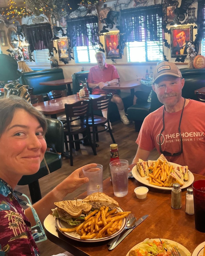 We got to her house where we unloaded our packs and headed to town. We stopped to eat at evergreen cafe which was decked out for Halloween. I got a turkey sandwich since I had been craving one.