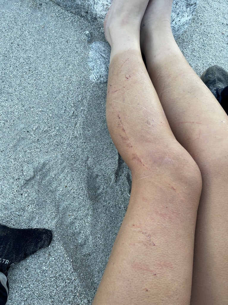 I tried to just keep a good attitude and enjoy the trail but it was getting tough. My sweat was seeping into the cuts on my arms and legs and kept stinging.