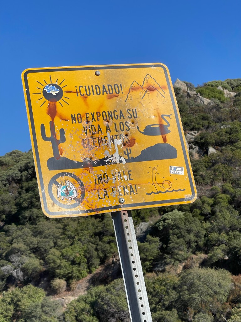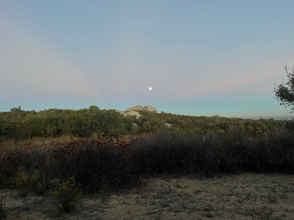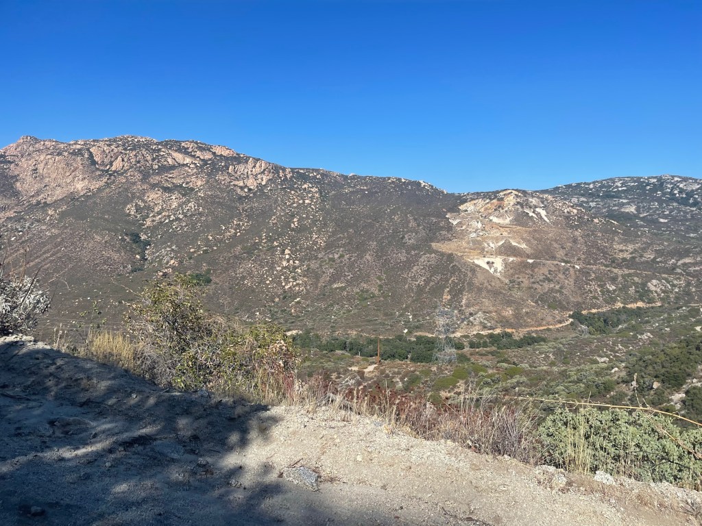 On day 56 I left camp around 6:15 and started the 10 miles to the Lake Morena general store where we were going to meet another one of Stewart’s friends, Aaron. It was a chilly morning. My tent and sleeping bag were wet from condensation. I wore my sweater and beanie for about 8 miles. We could see our breath while we were walking! I accidentally walked down a creek for a while and didn’t realize I was off trail. I then bushwhacked back to meet up with the trail. This was mostly uphill through brush and over lots of rocks. It probably took me longer to bushwhack than to just walk back and meet up with the trail where I left it. Regardless I still made it to the store by 10 and met Aaron, Gams, Zack, and Stewart. Aaron brought us all breakfast burritos which were delicious! I dried out my tent and sleeping bag. We got back on trail around 11:30 and Aaron joined us for about an hour of walking. We met two northbound section hikers who gave us information on water ahead.