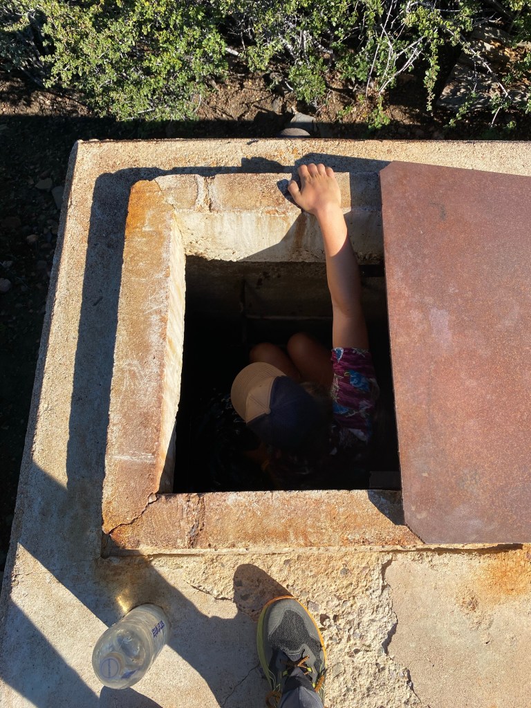 We hiked to the next water source which was a big water tank. I actually had to get inside the tank and go down a couple rungs on the ladder to get water. It was a little weird. But the water was cold and clear!