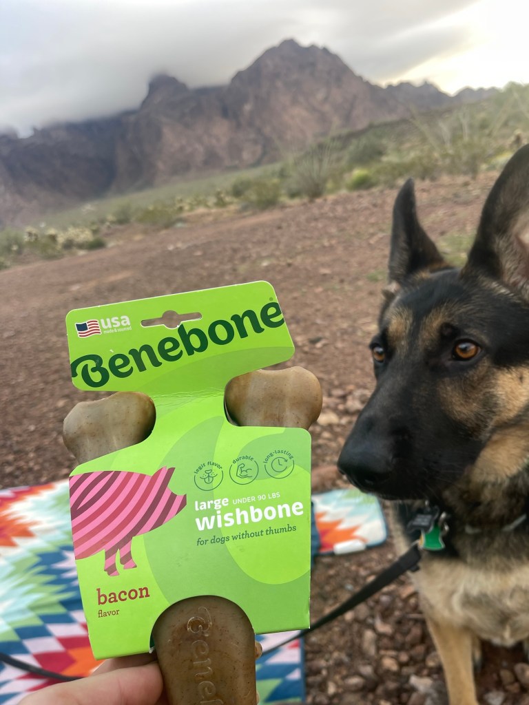 From my campsite I was about a mile walk from the Palm Canyon trailhead. We packed up a bag with some snacks and headed for the trailhead. There was a trail that went to the left of the trailhead that seemed interesting so we went that way and walked a couple of miles. The trail was rocky with some dirt, and lined with Cholla cactus. Cash and I walked a while then found a spot to rest free of cactus needles. I gave him some water and cut up an apple for us to share. Cash took a little nap in the sun and I rested my feet while enjoying the view of the mountains around us. It was so beautiful, I probably could have laid there enjoying the view for hours. But, Cash got antsy so we decided to walk back. On the way back Cash unfortunately encountered some cactus needles. I was able to pull them out, but it did scare both of us into watching where we were stepping more!